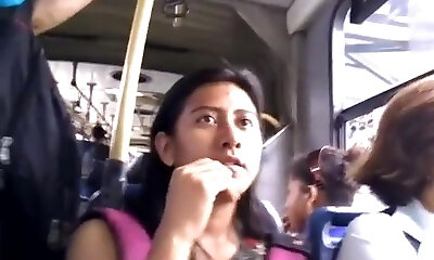 niesamowita blondi w autobusie (downblouse i upskirt bez majtek)