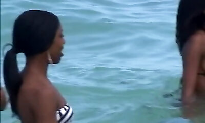 Ebony girls in swimsuits partying, swimming, and showing off their figures