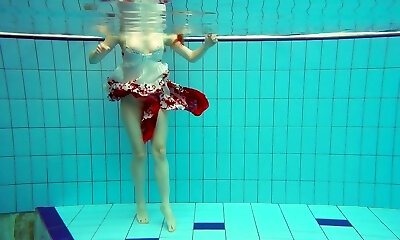 Sizzling redhead model Marketa swimming bare in a pool