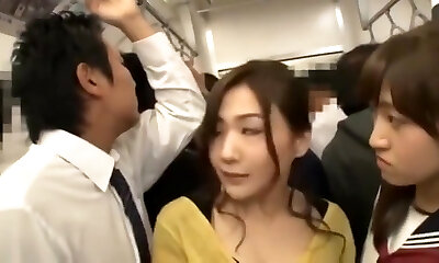 Promiscuous Japanese chick Mami Asakura is fucked by several strangers in the subway car