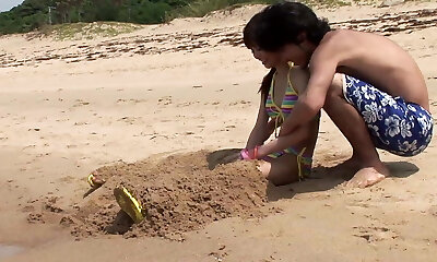 Chinese orgy at the beach along Kyouko Maki