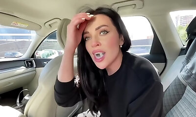 Brunette teen stunner Violet Rain gives a blowjob and swallows cum